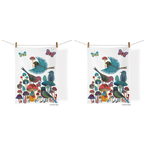 2 x WerkShoppe Cotton Kitchen Tea Towel 53.5x71cm - Mushroom Garden