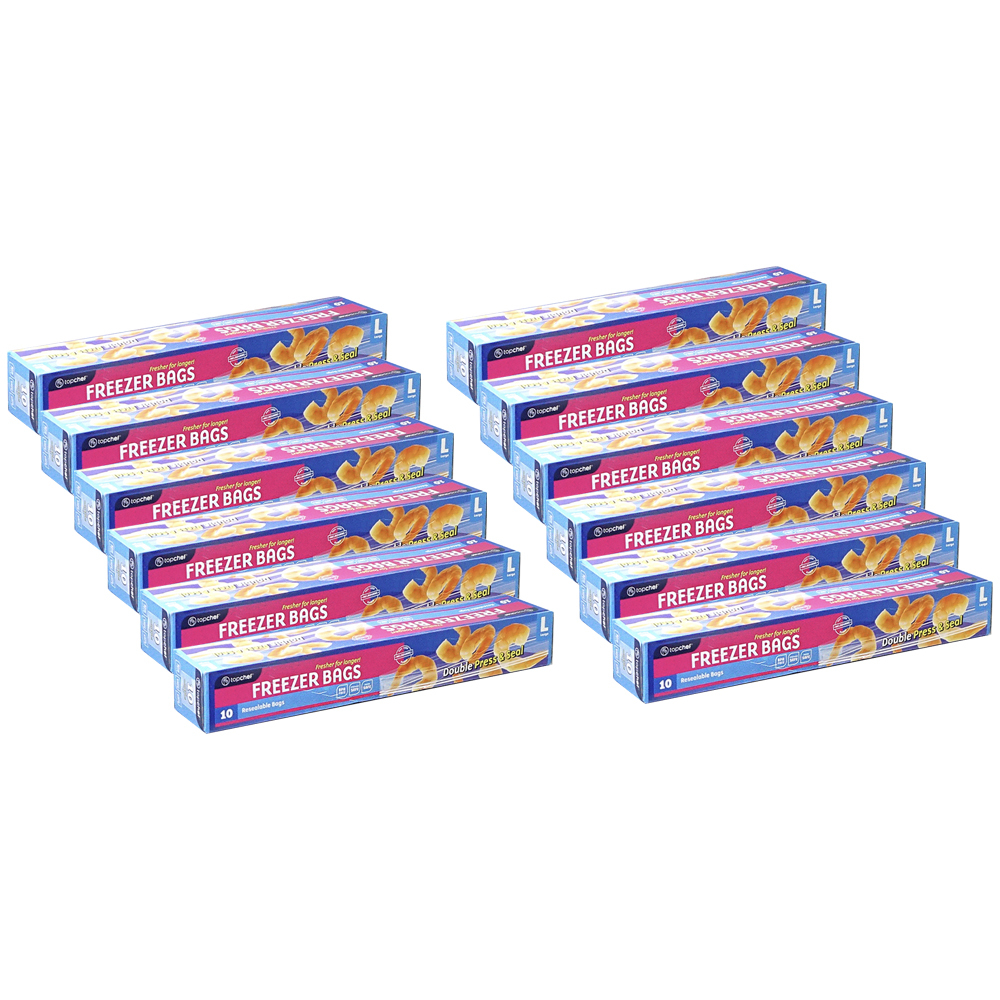 12 x 10pc Topchef Double Press & Seal Large Freezer Bag