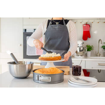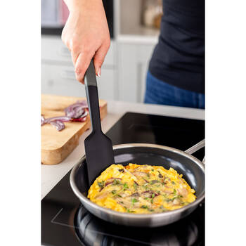 Elevate your everyday baking and cooking with the KitchenAid Scraper Spatula, a durable and stylish kitchen tool designed for a range of prep tasks. The improved ergonomic handle is precisely weighted for optimal comfort, balance, and control, giving it a premium feel in your hand. A debossed logo and built-in hanging loop add a polished touch to your kitchen setup.
