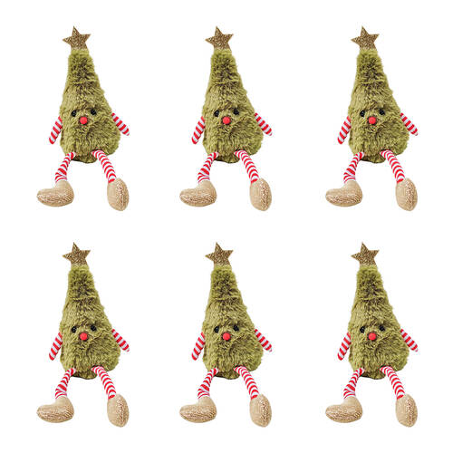 6PK Urban Fluffy Christmas Tree Sitting Decoration Ornament 28cm Green