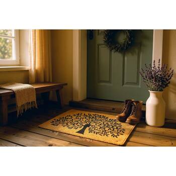 Featuring the Tree of Life Design this Large Doormat will add the perfect decor to your entrance. It has excellent scraping properties and totally functional. Latex backed doormats have the benefit of being more slimline than regular 100% Coir Doormats. This allows them to be used under doors with a lower clearance. Latex backed Coir mats are designed to last and can easily withstand heavy foot traffic .Due to the strong natue of the coir fibrefibres,theyre are also great at dislodgingdirt and moisture,minimising the debris tracked into your home. We have also treatred this mat with anti shedding to retard any shedding.