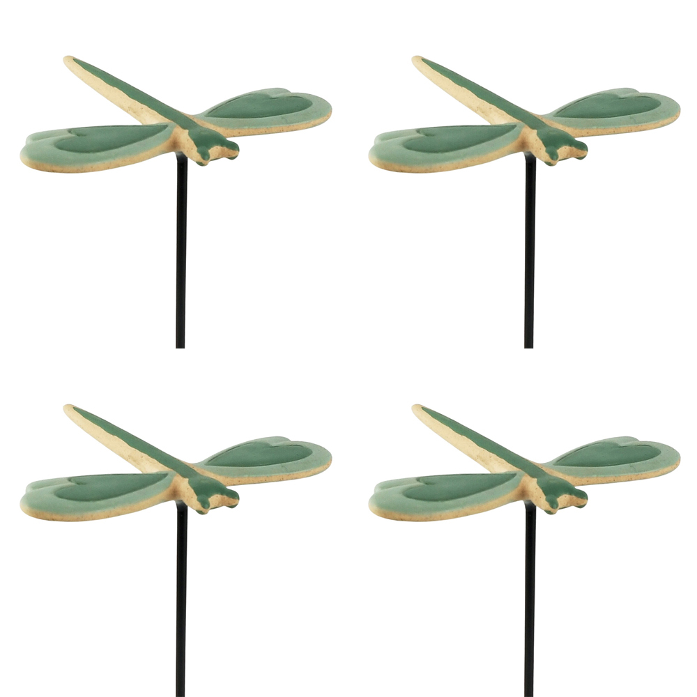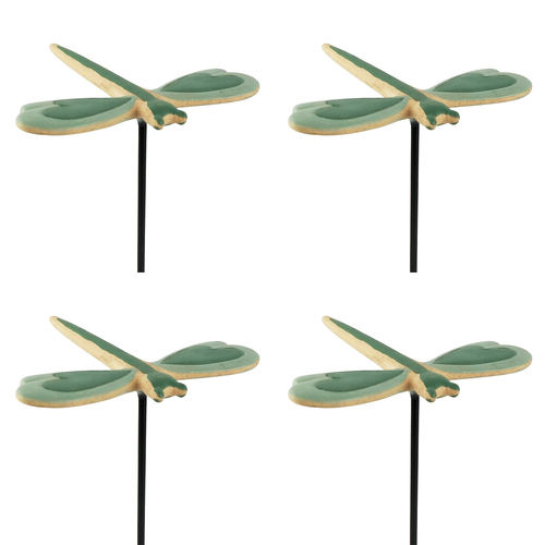 4x Urban 26cm Dragonfly Ceramic Garden Charm on Stick - Sage