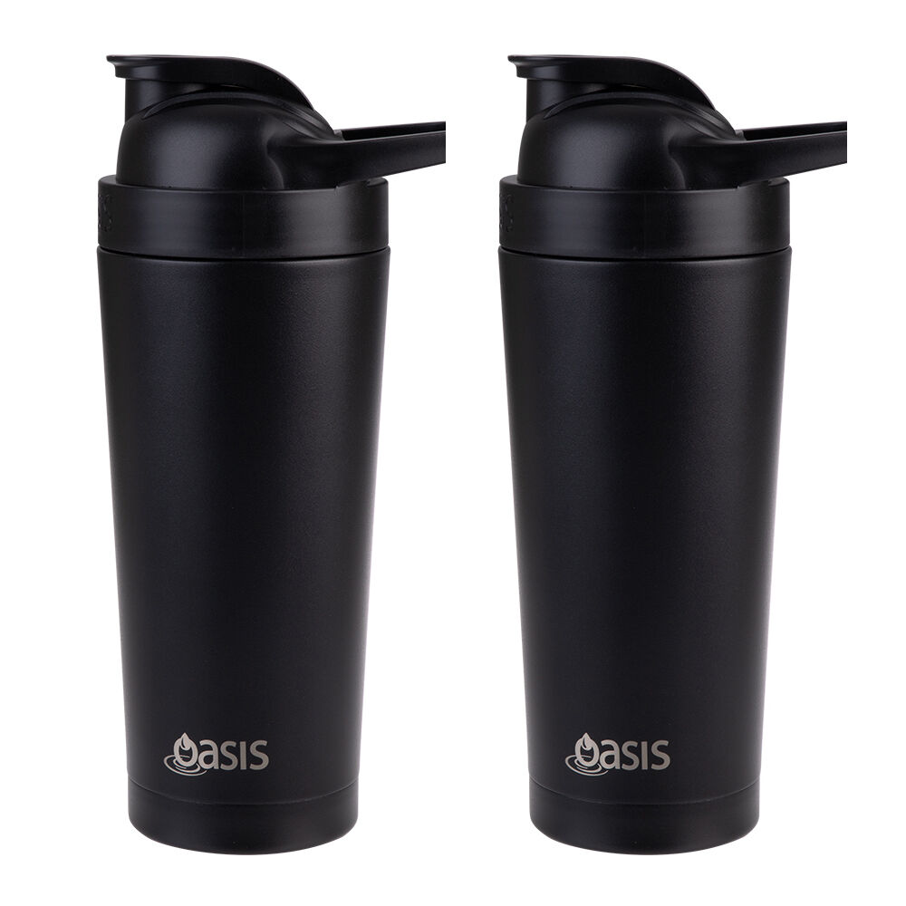 2PK Oasis Stainless Steel Insulated Protein Shaker Double Walled 700ml Black