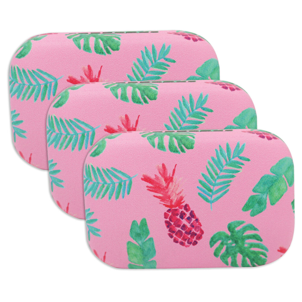 3PK Wicked Sista Pineapple Palm Rectangle Jewellery Hard Cover Travel Case 8.5x2.5cm