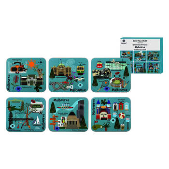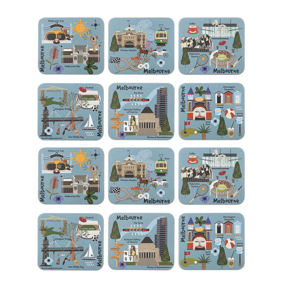 2x 6pc Ashdene Land Down Under Melbourne Cork Drinking Mat Coaster 11x9.7cm