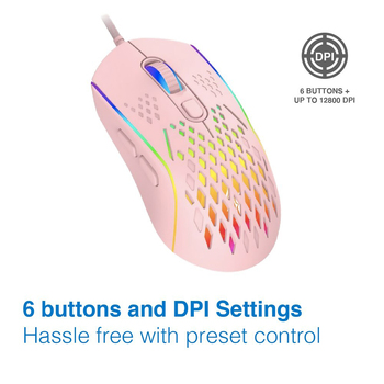 Laser Wired Gaming RGB Mouse 12800 DPI For PC/Laptop - Pink