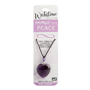 Quality leather cord necklace featuring a heart-shaped amethyst pendant Amethyst is linked to peace, tranquility and relaxation Part of our Wishstone Collection - a sleek modern rebrand of our best-selling Something Forever range