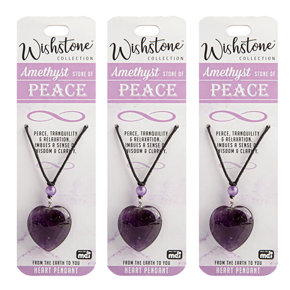 3PK Wishstone Collection Amethyst Stone of Peace Heart Pendant - Purple