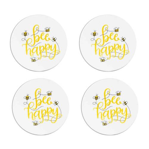 4PK LMD Ceramic Bee Happy - Beautiful On The Inside Table Coaster 10cm