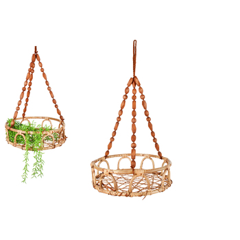 This classic style rattan basket with wooden beads used for hanging can be a great addition to your home decor! With its natural brown colour, it can easily complement any indoor or outdoor setting. Ideal to hang in your living room, garden, office and more.