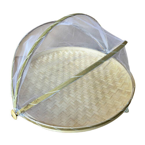 - Stylish and Practical Design Crafted with a natural woven bamboo base and a collapsible mesh dome, adding elegance and convenience to outdoor meals.