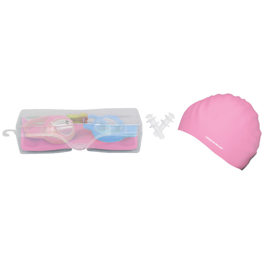 Mirage Kids Goggles/Swim Cap/Ear Plugs Swimming Pack Blue/Pink