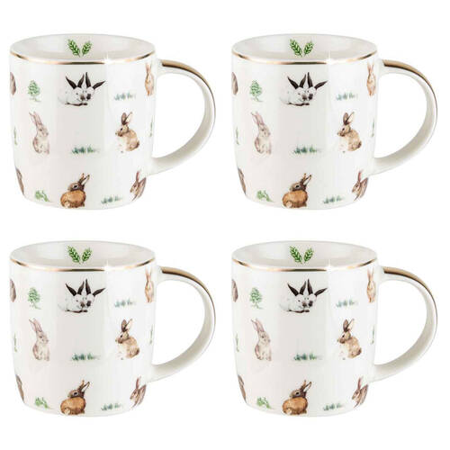 4PK LMD Bunnies Farm Lane New Bone China Coffee Mug 360ml - White