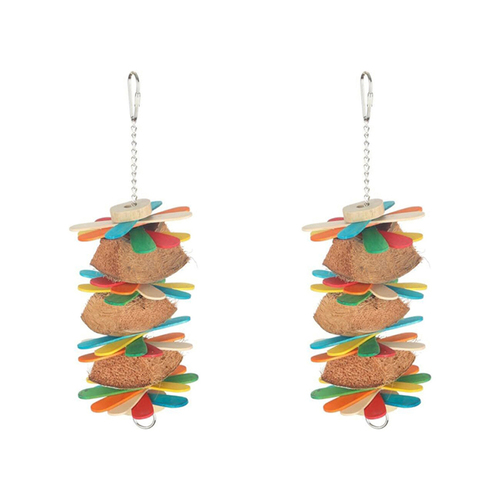 This eye-catching ornament is crafted from popsicle sticks and coconut husks, and is a great addition to any pet bird’s environment.
