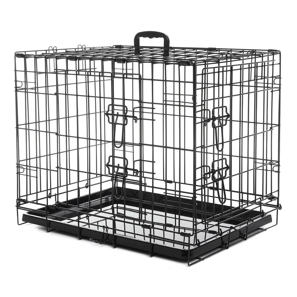 The Crate features two doors to provide quick and easy access to your pet, a collapsible design for convenient storage and a removable plastic tray that can be easily cleaned.