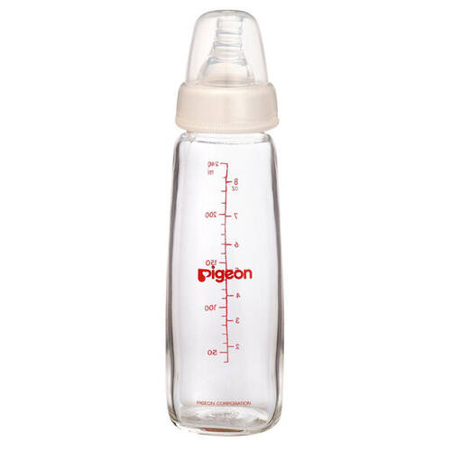 Pigeon Slim Neck Peristaltic Glass Bottle 240mL encourages baby to use natural sucking pattern.