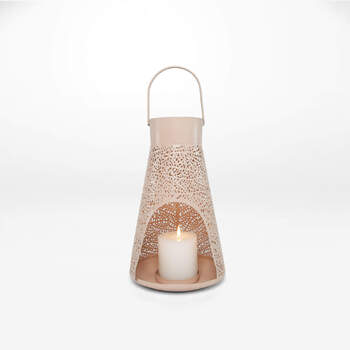 Taking inspiration from the eclectic souks of Morocco & Turkey, this lantern will elevate any outdoor entertaining area. While modern & minimal, its nod to tradition & wanderlust make this piece suitable for just about anyone. Match it back with other sized lanterns, or keep it as a hero decorative centrepiece. Colour: Dusty Pink Material: Galvanized Iron Item Dimensions Approx: 17 x 28 x 17cm Includes: 1x Candle Holder