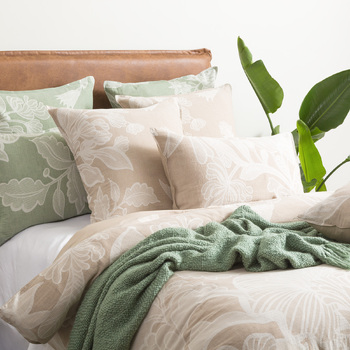 The standout feature of the Bentley Quilt Cover is its captivating big floral designs. The floral patterns are not just ordinary, they are intricately woven and yarn-dyed into the fabric, ensuring long-lasting vibrancy and visual appeal. The large leaves in the design boast a unique waffle pattern, adding an extra layer of texture and depth to the overall aesthetic. Set includes Quilt cover & Pillowcase. Complete the look by adding on the European Pillowcase.