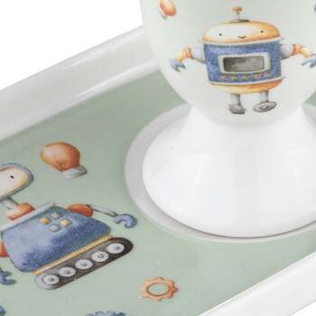 Ashdene Robots Soldier Kids New Bone China Egg Cup & Plate Set