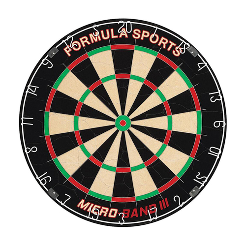 The Formula Sports Micro-Band III bristle dartboard is a professional tournament sized board that features super dense high-grade sisal and ultra-thin wire technology. Includes: