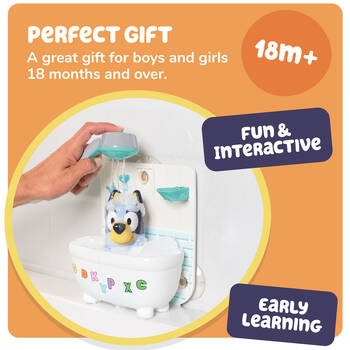 • Encourages Creative Play & Learning: The Shower & Scrub Bluey bath toy introduces children to the concept of bathtime routines in a fun and engaging way.