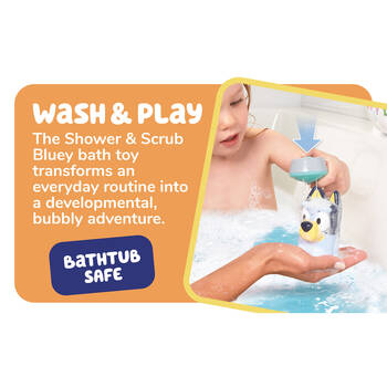 • Developmental Bath Toys: Like other TOMY Toomies bath toys, Shower & Scrub Bluey helps toddlers develop fine motor skills and build confidence around water.