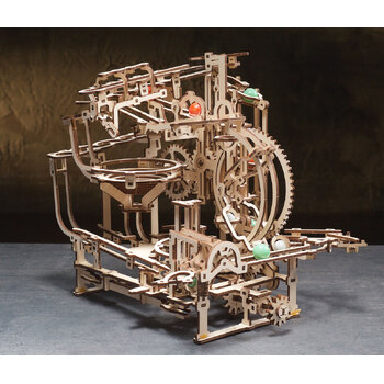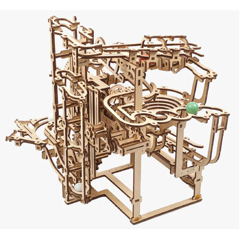 Introducing the Marble Run Stepped Hoist, the second in a series of Ugears modular marble runs. This fun and fascinating wooden marble run features an ingenious 3-stepped alternating lift mechanism and a set of new features to hold your attention as you watch the marbles make their cyclical journey. Multiple tracks and elements are packed into a compact space in this DIY marble run.