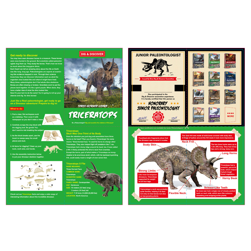 As children carefully chisel away at the plaster, they will develop skills such as patience and problem-solving while learning about the anatomy of a Triceratops. Once the skeleton has been fully excavated, children can assemble it on the included display stand to create a stunning piece of prehistoric decor for their room.