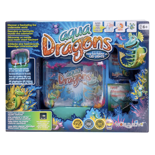 Aqua Dragons are Live aquatic creatures which you will hatch and bring to life in the underwater world tank. Aqua Dragons are three eyed, long tailed gracious funny little swimming animals from the crustacea family, that its eggs can be preserved in salt for long periods of time and hatched again one introduced into water! Caring for your Aqua Dragons you will see them eat, play, grow and learn about the differences between males and females and even how they reproduce.